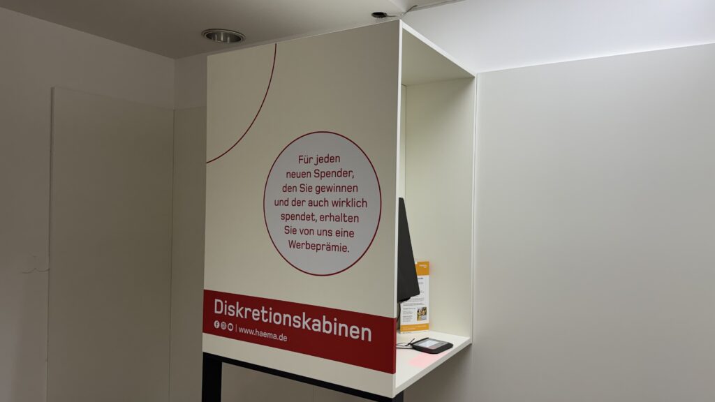Was neben aller medizinischen Professionalität besonders auffiel, war die Atmosphäre. In dem Raum, in dem der Ablauf der Spende erklärt wurde – einem Bereich zum Ankommen und Durchatmen, wo man vor oder nach der Spende noch kurz zusammensitzt – entstand sofort ein Gefühl von Vertrautheit. Man grüßt sich, man kennt sich, man wirkt miteinander verbunden. Es ist diese Selbstverständlichkeit im Miteinander, die dem Zentrum etwas Heimisches gibt.