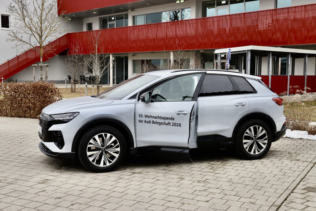 Ein Auto als Symbol für 50 Jahre Engagement: Mit der Übergabe eines neuen Audi Q4 an die Lebenshilfe wird im Jubiläumsjahr der Audi Weihnachtsspende nicht nur Mobilität ermöglicht – sondern eine Partnerschaft gewürdigt, die seit Jahrzehnten wirkt.