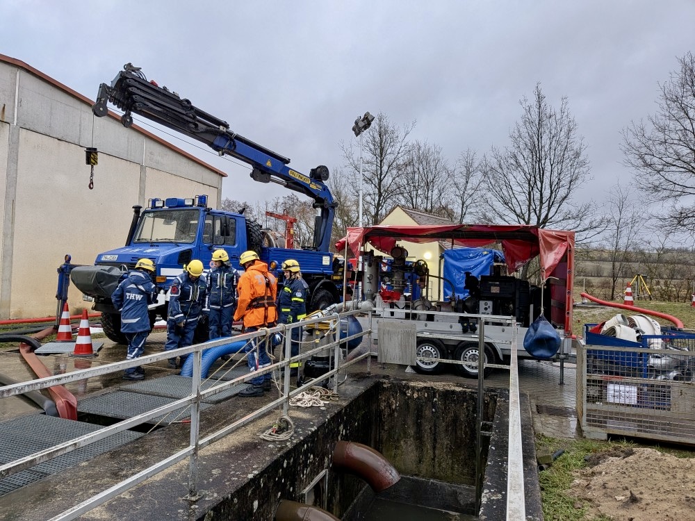Gemeinsam mit den Einsatzkräften des THW Erlangen und des THW Baiersdorf führten die Ingolstädter Helfer umfangreiche Pumparbeiten in einer Kläranlage im Raum Eckental durch. Ziel der Maßnahmen war es, ein Überlaufen der Anlage und damit verbundene Umweltschäden zu verhindern.