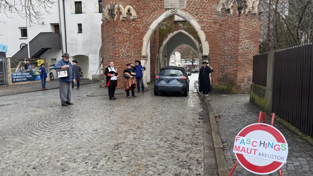 Am Faschingsdienstag wurde am Ingolstädter Kreuztor wieder der sogenannte Pflasterzoll erhoben. Die Ehrenamtlichen des Fördervereins Kreuztor standen auch heuer in historischem Gewand Spalier und baten auf freiwilliger Basis um einen kleinen Obolus für den guten Zweck.