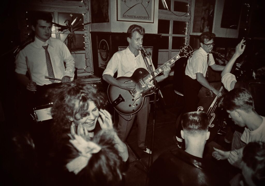 Auch lokale Musiker prägten die Szene. Bands wie Rockabella & The Giddyups, Sex Bizarre, Cycodad, Vectom, Tequila Cats…..spielten in Clubs, auf kleinen Bühnen oder bei Veranstaltungen. Live-Musik gehörte selbstverständlich zum kulturellen Leben der Stadt. Wer unterwegs war, traf bekannte Gesichter – vor Kneipen, in Bars oder auf Konzerten.