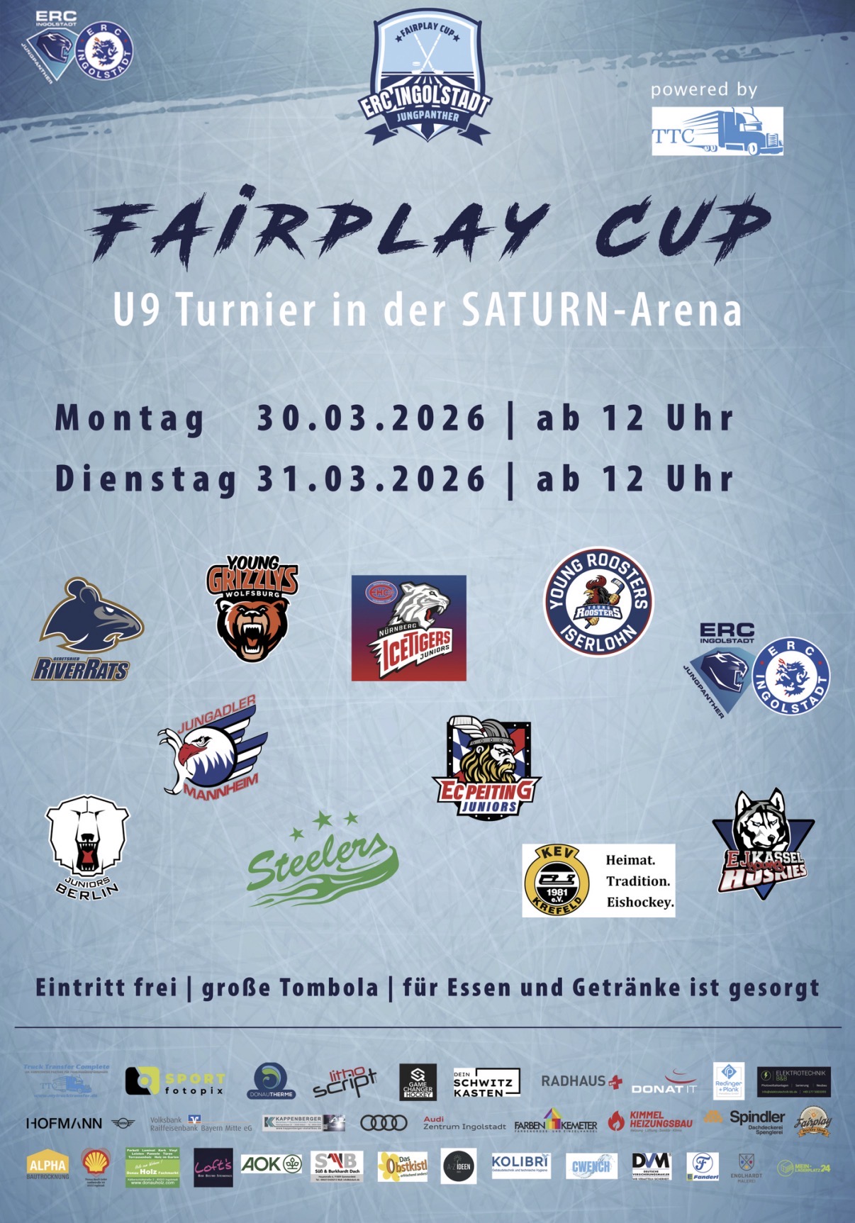In der Saturn Arena ist es wieder so weit: Zum vierten Mal findet der FAIRPLAY CUP statt. In diesem Jahr steht der U9 Fairplay Cup 2026 auf dem Programm. Am 30. und 31. März 2026 kämpfen zwölf Mannschaften in der 2. Eishalle der SATURN Arena um die begehrte Trophäe.