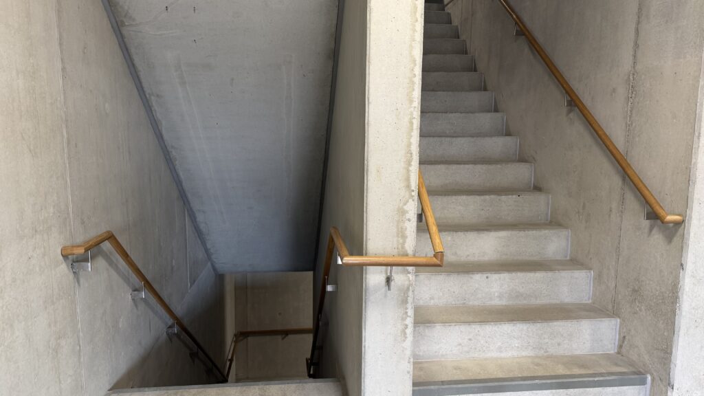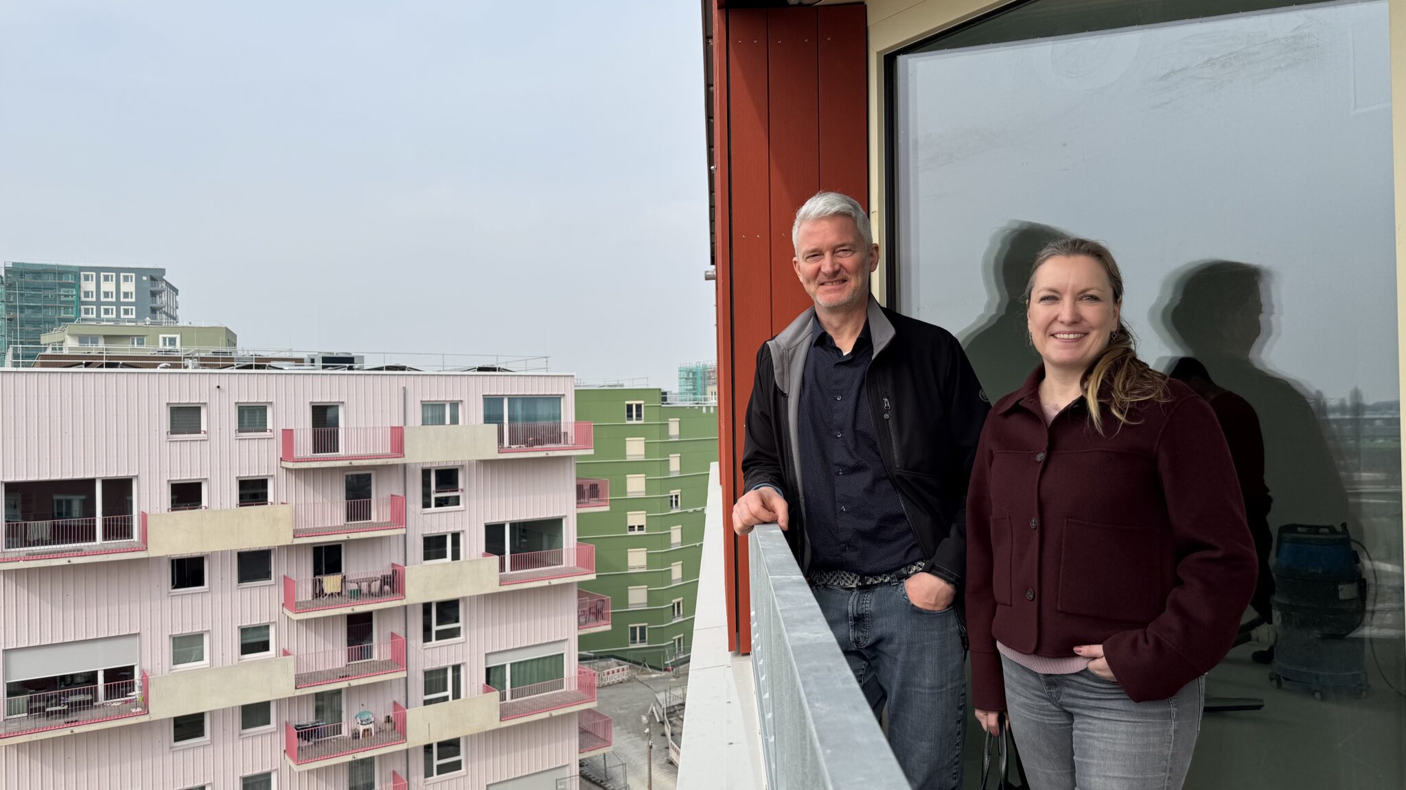 Architektonische Qualität zeigt sich oft im Detail. In einem Haus etwa schafft ein sogenanntes Scherentreppenhaus mit gegenläufigem Grundriss eine effiziente Flächennutzung und zugleich einen zweiten Fluchtweg. Auch die Wohnungen wirken überraschend großzügig. Große Fensterflächen lassen viel Licht herein und geben den Räumen eine offene Atmosphäre. Beim Rundgang wird deutlich: Hier geht es weniger um spektakuläre Architekturgesten als um funktionierende Räume für den Alltag.