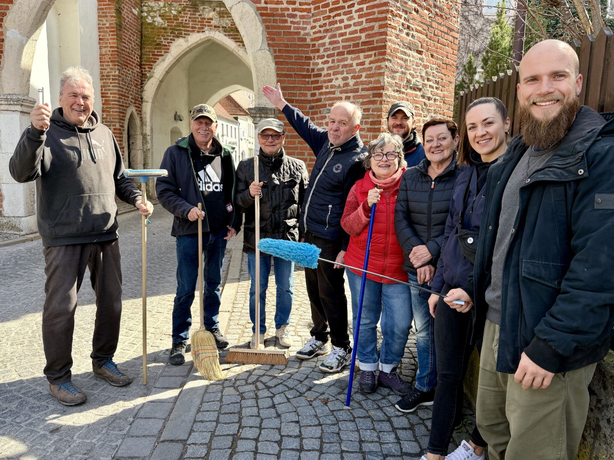 Beim jährlichen Frühjahrsputz haben die Mitglieder des Fördervereins Kreuztor e.V. am Wochenende das Ingolstädter Wahrzeichen für die neue Saison auf Vordermann gebracht. Mit Besen, Pinsel und Putztuch ging es mit viel Einsatz Schmutz, Spinnweben und Unkraut im Außenbereich gezielt an den Kragen an den Kragen. Unterstützung erhielten die Ehrenamtlichen dabei von Fans des ERC Ingolstadt.