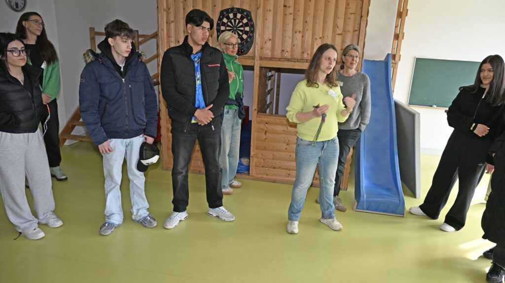 Beeindruckt zeigen sich die Jungen und Mädchen vom Motorikraum, in dem Gruppenstunden stattfinden, zum Beispiel für Kinder psychisch kranker Eltern. Ob es etwas kostet, in die Einrichtung zu kommen, will eine Junge wissen. Katrin Bottesch beruhigt ihn, „dass dies nicht der Fall ist“. Ob nicht besser ein Freund bei Problemen helfen solle als ein Therapeut, fragt ein Mädchen. Nicole Fichtner erklärt ihr, dass man zwischen Problemen und Krankheiten unterscheiden müsse. „Probleme wie Liebeskummer kann man hier besprechen, muss es aber nicht. Für Krankheiten wie eine Depression braucht es aber Fachkräfte.“