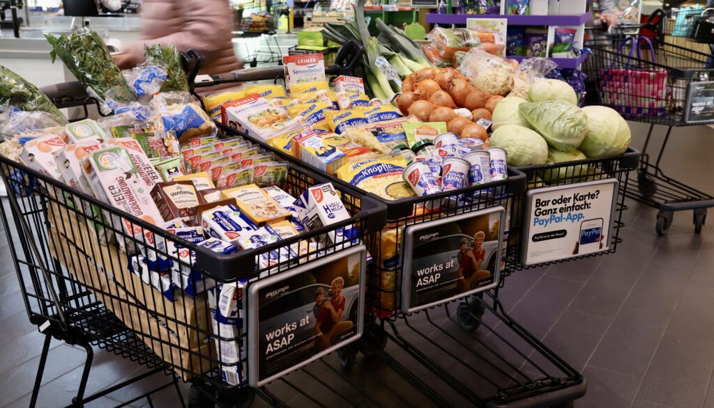 Drei voll beladene Einkaufswägen und weitere Kisten mit Lebensmitteln: Mit dieser Spende unterstützt die EDEKA Südbayern Handels Stiftung & Co. KG die Osteraktion des Schanzer Kindl. Die Ehrenamtlichen kochen am Ostermontag erneut für die Villa Johannes in der Gaimersheimer Straße, eine Beratungs-, Kontakt- und Begegnungsstätte für Menschen mit chronischer Suchterkrankung. Geplant sind rund 140 Mahlzeiten.