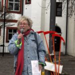 Man müsse sich vergegenwärtigen, dass es im Krieg nicht (nur) darum gehe in den Krieg zu ziehen, um ehrenvoll zu sterben, sondern vor allem darum Menschen zu töten – möglichst viele zu töten. Die Demonstrierenden stehen für das Lebensrecht und Gerechtigkeit für alle – unabhängig davon ob sie und genehm sind oder nicht, ob Freund oder Feind: „ Der Funke der Überheblichkeit, Feindseligkeit und Menschenverachtung darf nicht auf uns überspringen. Wir wollen einen Waffenlosen und entwaffnenden Frieden. Wir wollen Friedfertigkeit lernen. Man werde einen Krieg nicht akzeptieren. Man werde widersprechen. Man werde laut sein und man werde unbequem sein. (HaGa)