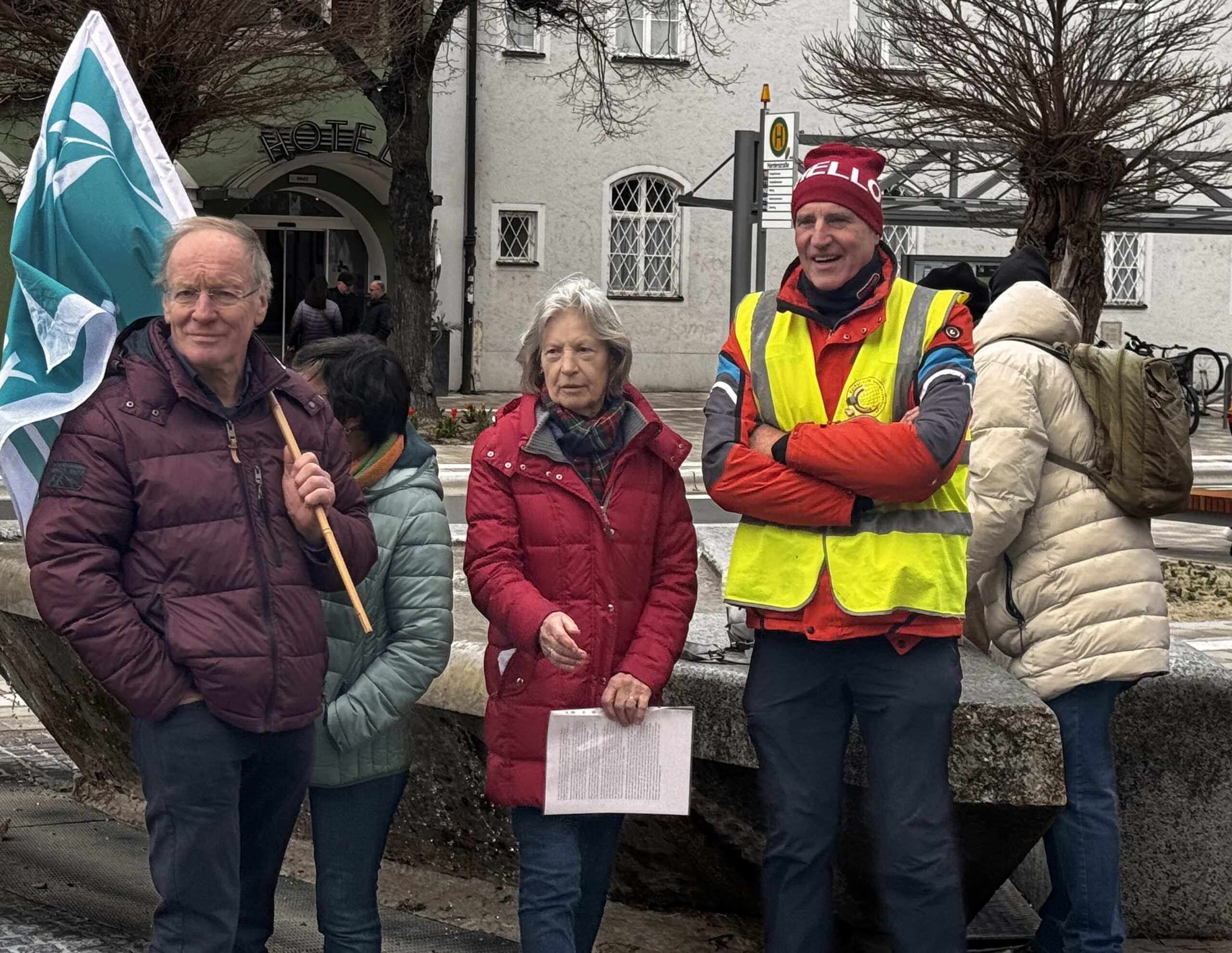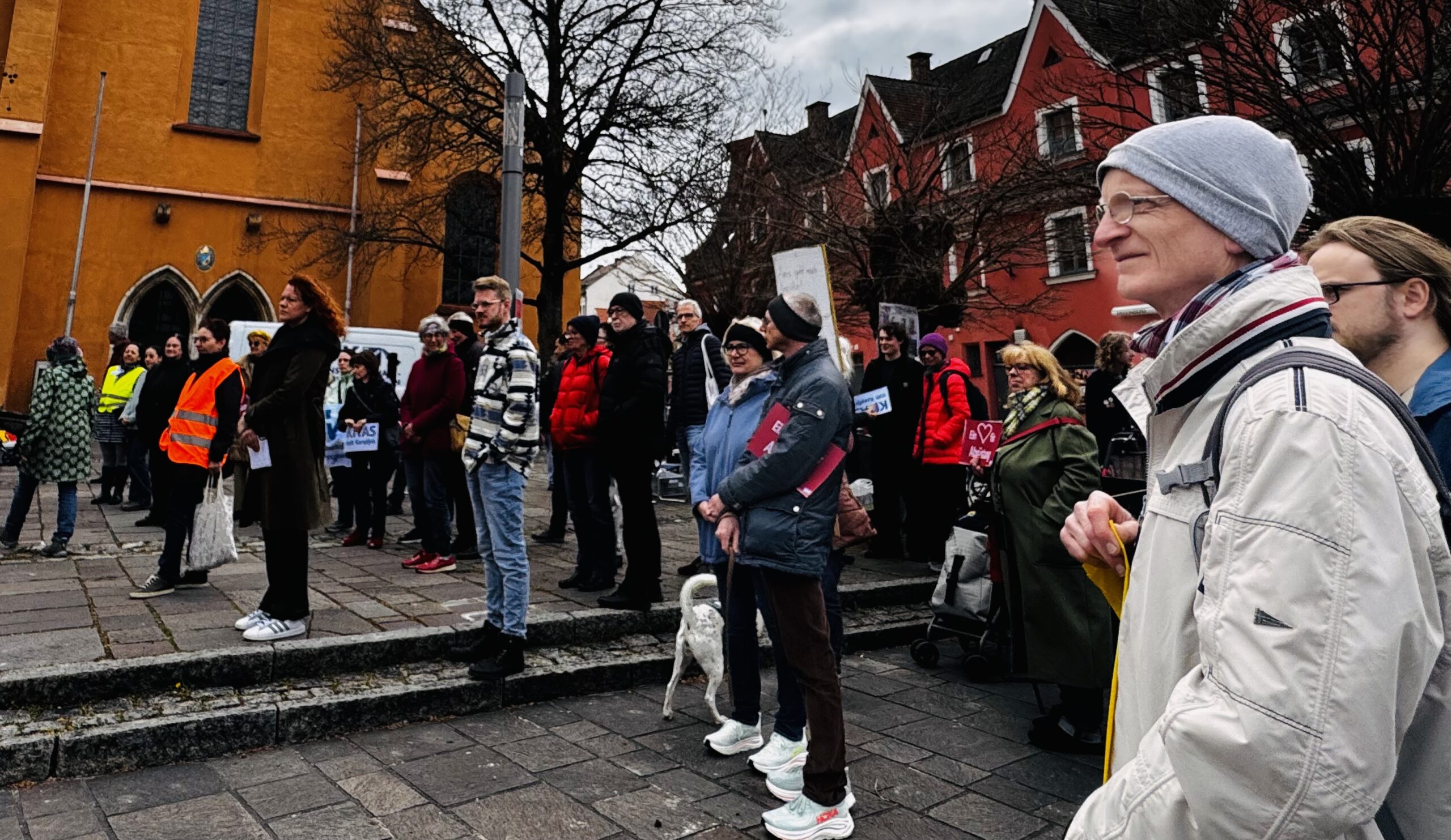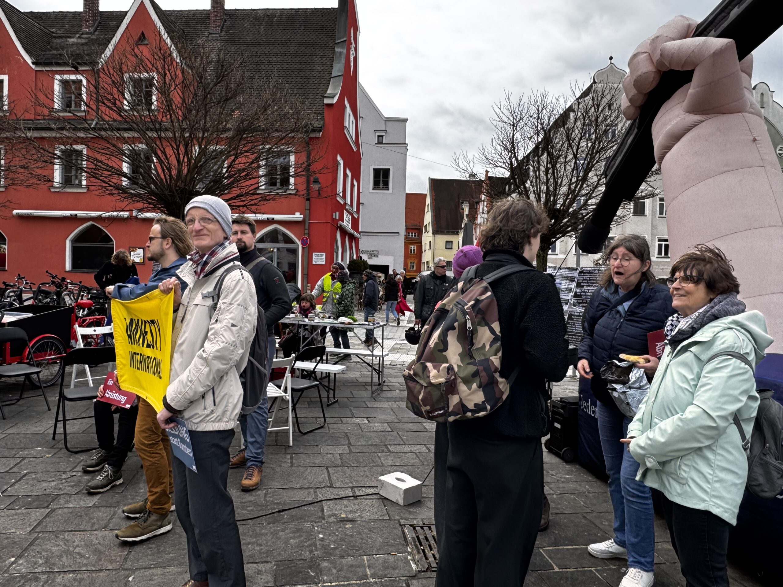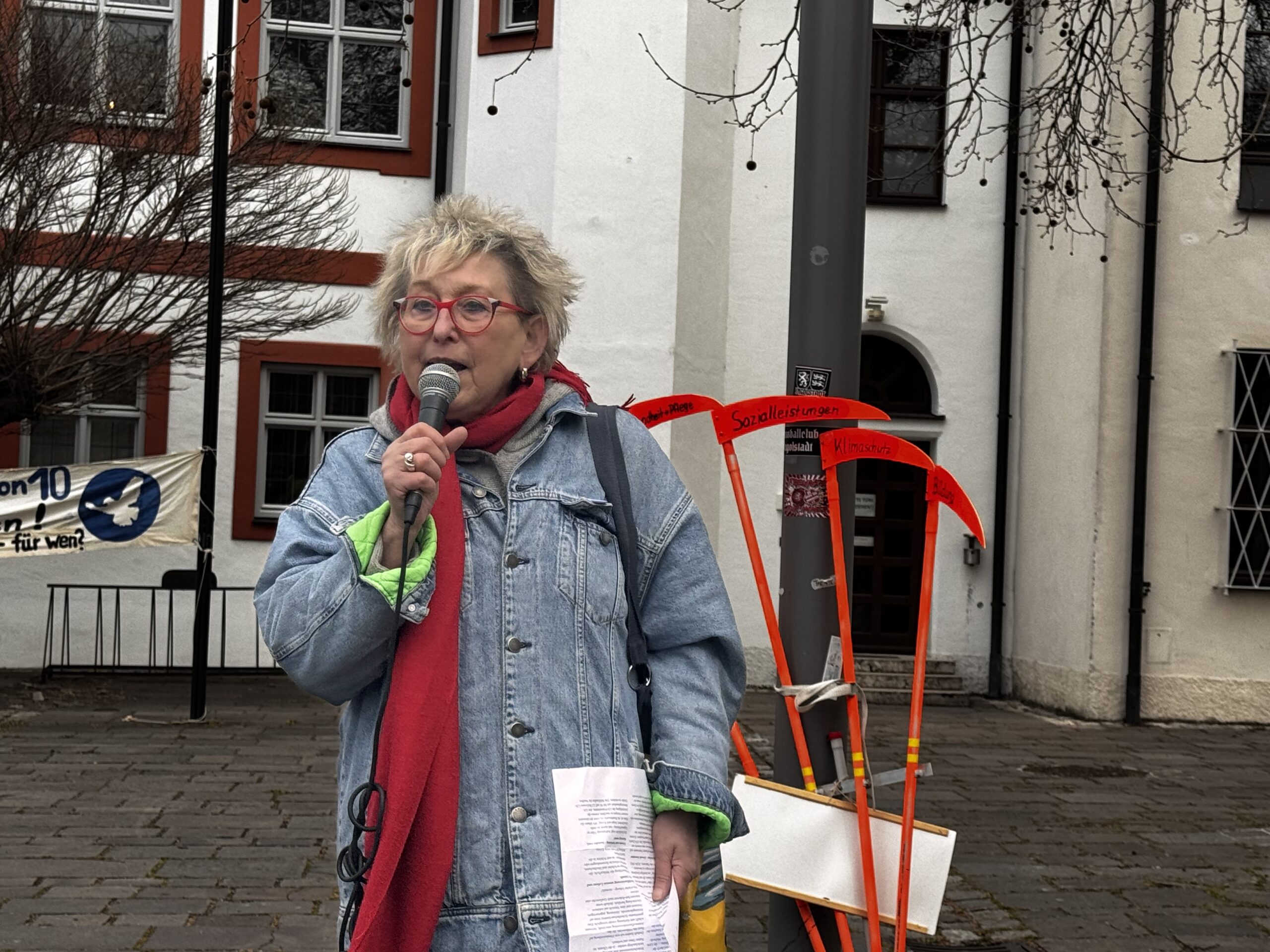 Man müsse sich vergegenwärtigen, dass es im Krieg nicht (nur) darum gehe in den Krieg zu ziehen, um ehrenvoll zu sterben, sondern vor allem darum Menschen zu töten – möglichst viele zu töten. Die Demonstrierenden stehen für das Lebensrecht und Gerechtigkeit für alle – unabhängig davon ob sie und genehm sind oder nicht, ob Freund oder Feind: „ Der Funke der Überheblichkeit, Feindseligkeit und Menschenverachtung darf nicht auf uns überspringen. Wir wollen einen Waffenlosen und entwaffnenden Frieden. Wir wollen Friedfertigkeit lernen. Man werde einen Krieg nicht akzeptieren. Man werde widersprechen. Man werde laut sein und man werde unbequem sein. (HaGa)