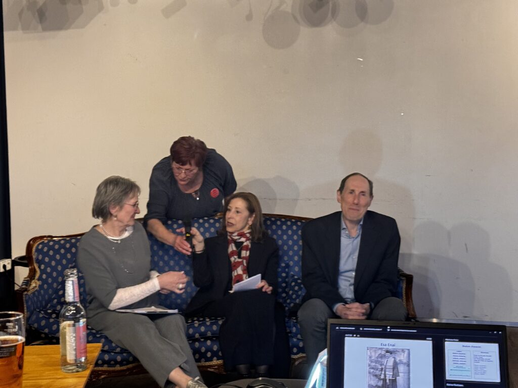 Der amerikanische Gast, Mike Ross, erinnerte an seinen Vater und beantwortete die Fragen der Zuhörenden. Die Veranstaltung fand ihren gemeinsamen Abschluss mit dem israelischen Volkslied Shalom chaverim. (HaGa)