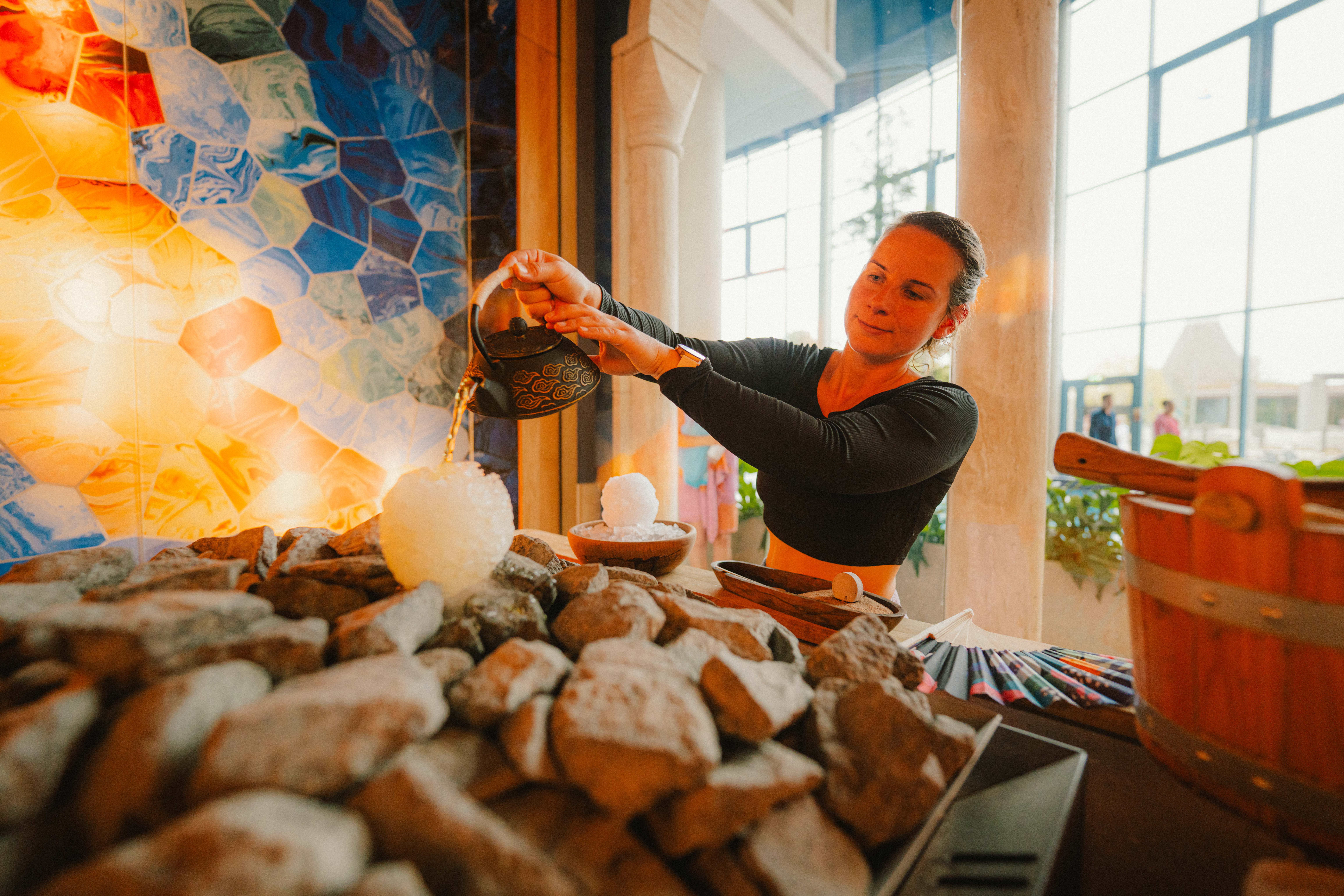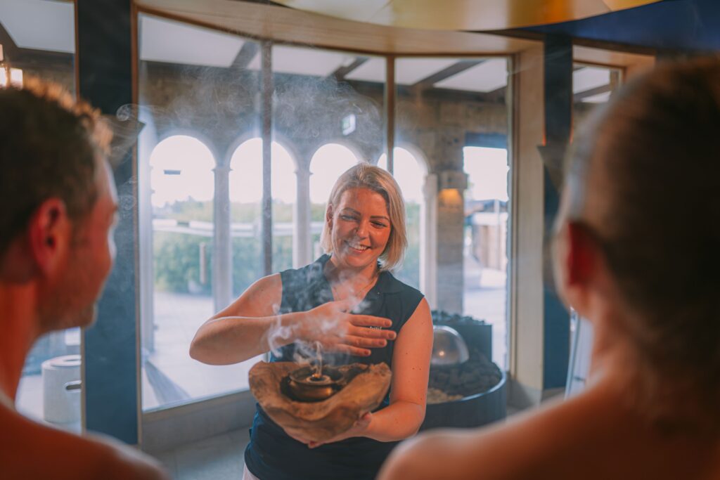 Im Mittelpunkt stehen vielfältige Angebote wie Räucherzeremonien mit natürlichen Kräutern und Düften, die eine intensive Atmosphäre schaffen und zum Abschalten einladen. Auch schamanische Rituale in den Saunen sorgen für besondere Momente: Hitze, aromatische Essenzen und spirituelle Elemente verschmelzen dabei zu einem außergewöhnlichen Saunaerlebnis. Internationale Saunameister bringen ihre kulturellen Einflüsse ein. Sie gestalten mit Inszenierungen wie „Indian Spirit“ oder „The Elements“ eindrucksvolle Aufgüsse.