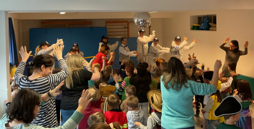 Ein besonderes Highlight wartete am Ende: Die Kindergartenkinder durften selbst mittanzen. Die Freude darüber war riesig. Isabella (6) schwärmte: „Das war super und ich fand’s ganz schön.“ Emma (6) ergänzte: „Ich fand’s toll, dass sie sich so schön Mühe gegeben haben und so schön getanzt haben. Und dass wir auch mittanzen durften.“ Auch Sophie (6) war begeistert: „Ich fand’s toll, dass sie extra in den Kindergarten gekommen sind und extra für uns getanzt haben. Ich fand’s auch toll, dass wir mittanzen durften.“ Der vierjährige Kai brachte es kurz und treffend auf den Punkt: „Das hat mir gut gefallen, die haben toll getanzt.“