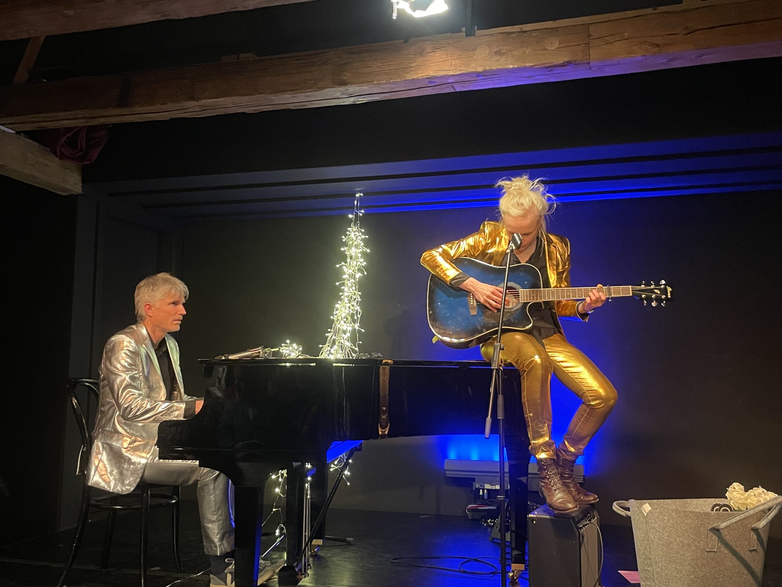 Flake ist immer wieder auf der Suche mit Schauspielerinnen experimentell Grenzbereiche der Musik und Shows zu entwickeln. Da fand in der Mezzosopranistin, Anne Müller, die perfekte Partnerin, die sich auf viele überraschende Formate gekonnt mit Augenzwinkern und vielfältiger ausdrucksstarker Mimik eingelassen hatte. Offen blieb die provokante Frage, die Müller sich und dem Publikum gestellt hatte: wer hält das Zepter für die Show in der Hand: die Sängerin oder der Pianist.