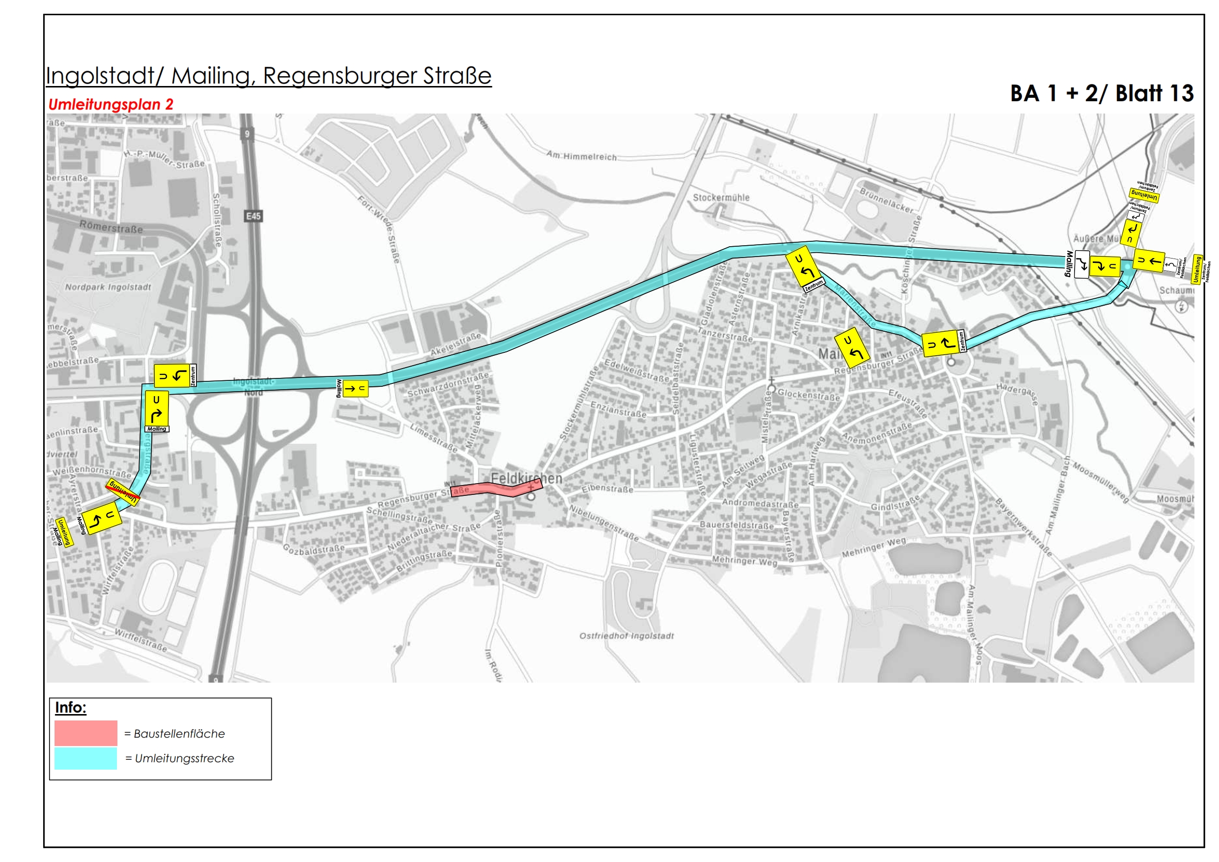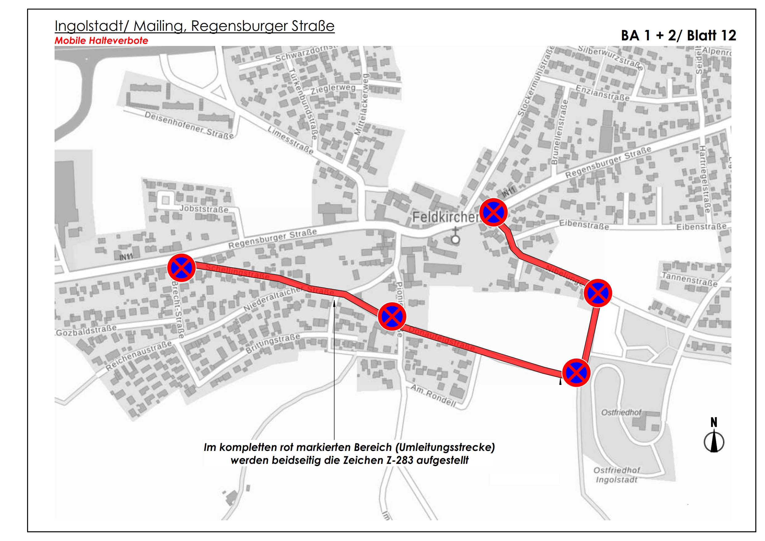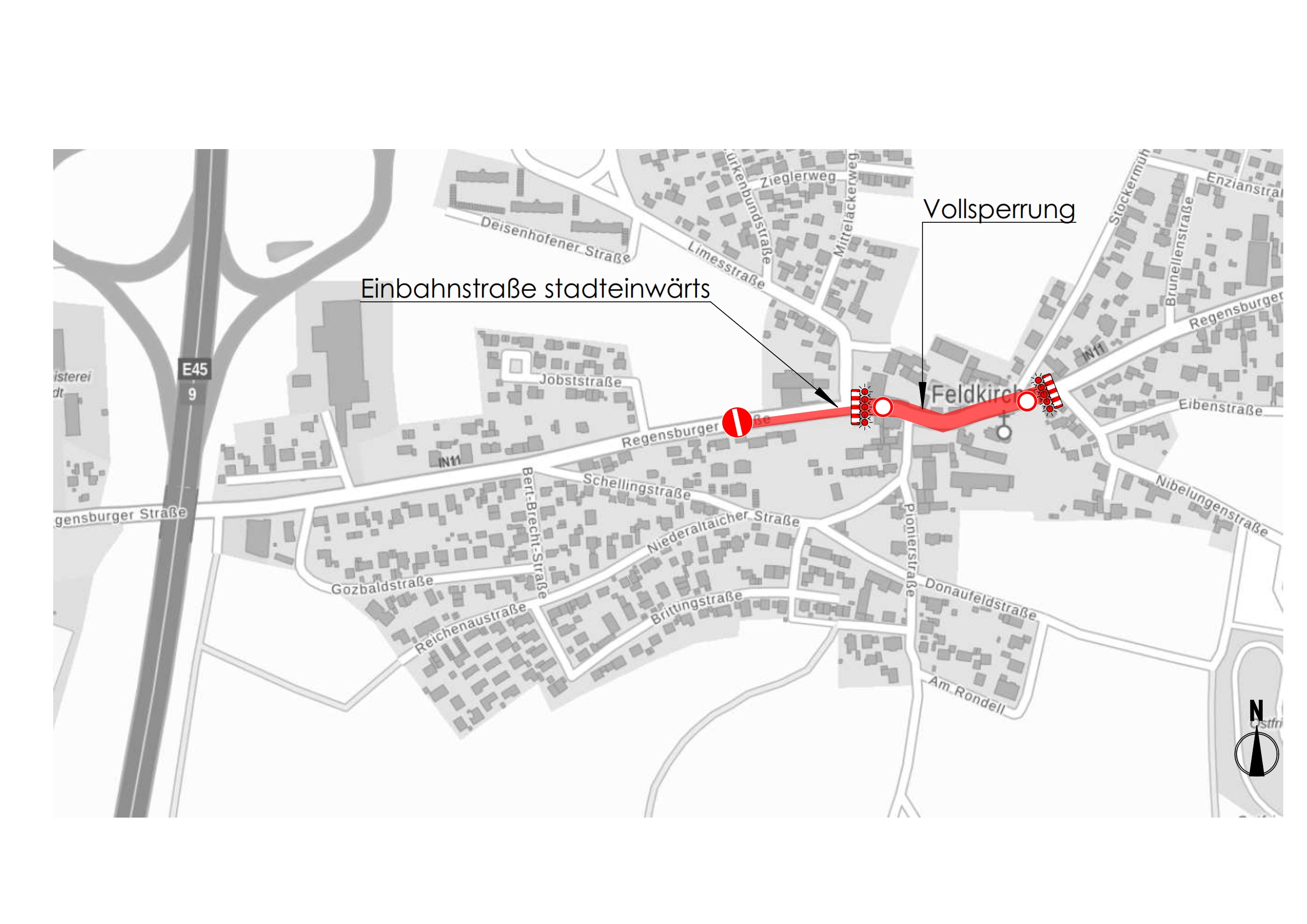 Ab kommendem Montag bauen die Stadtwerke Ingolstadt in der Regensburger Straße in Feldkirchen. Für etwa vier Wochen wird dafür eine Vollsperrung zwischen der Limes- und der Nibelungenstraße nötig, ab der Limesstraße gibt es stadteinwärts eine Einbahnstraßenregelung. Eine Umleitung wird großräumig ausgeschildert und verläuft über die B16a. Zudem wird der Gehweg auf der Nordseite der Regensburger Straße gesperrt.