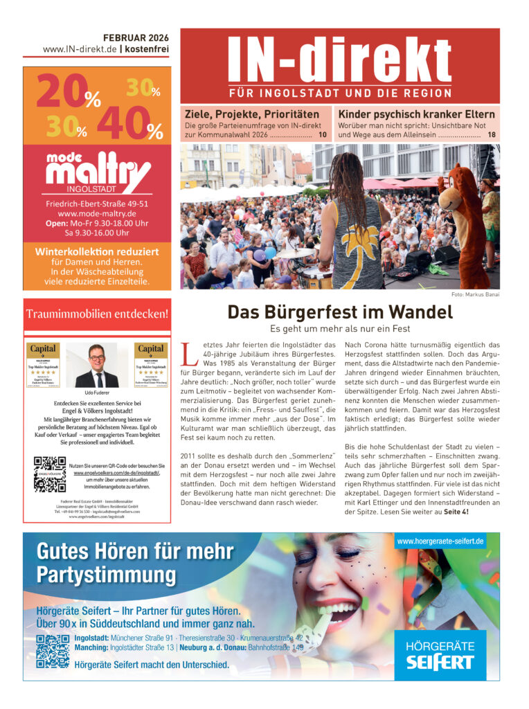 Die neue IN-direkt – Zeitung für Ingolstadt und die Region ist da! Wie immer verteilt als gedruckte Ausgabe an knapp 65.000 Haushalte in Ingolstadt oder schon jetzt hier online als blätterbares PDF nur einen Klick entfernt https://in-direkt.de/aktuell/53263/printausgabe-in-direkt-2025-maerz/